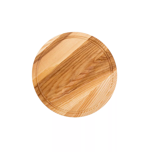 בוצ’ר אנדגריין מעץ אלון אירופאי איכותי, בקוטר 40 ס"מ, עובי 5 ס"מ. בעיצוב עגול ומגרעות נשיאה. butcher endgrain.
