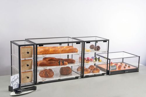 פעמון שקוף במידה 1/1 (53/32.5 ס"מ) עשוי פוליקורבנט חזק במיוחד, תחתית פרספקט שחור ומגש פורצלן לחימום והגשה, מתאים למאפים, קינוחים, כריכים ועוד…