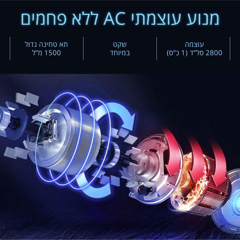 מנוע עוצמתי – מנוע 1כ"ס בעל מנוע אינדוקציה מהפכני HEAVY DUTY ללא פחמים , המפיק 2800 סל"ד