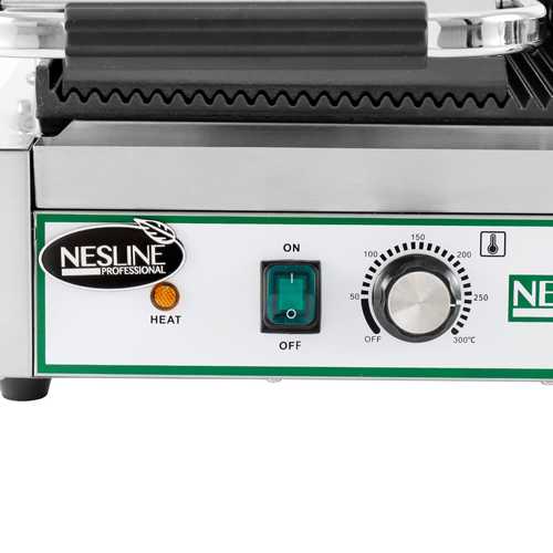 טוסטר לחיצה תעשייתי בודד מבית NESLINE חזק במיוחד, לשימוש תעשייתי. מצויד בפלטות חזקות מברזל יצוק פלטות מחורצות מגיע עד לטמפרטורה אדירה של 300 מעלות ידיות עמידות בחום מגש מיצים משטח יציקה כבד גוף