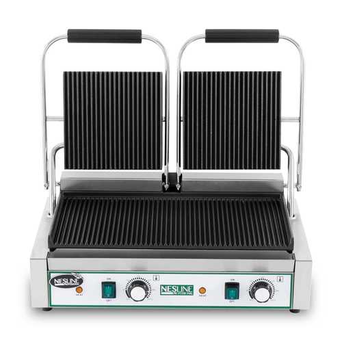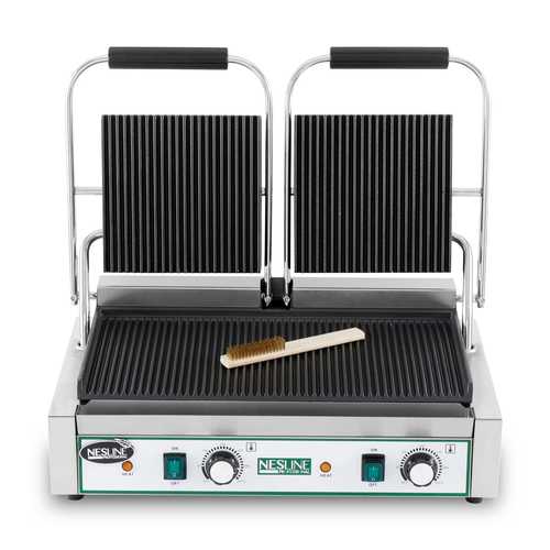 טוסטר לחיצה תעשייתי כפול מבית NESLINE חזק במיוחד, לשימוש תעשייתי. מצויד בפלטות חזקות מברזל יצוק מגיע עד לטמפרטורה אדירה של 300 מעלות