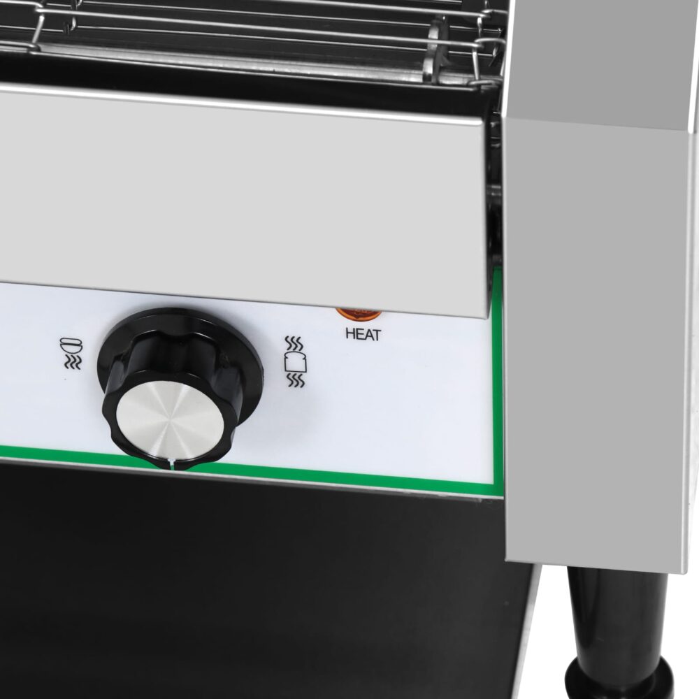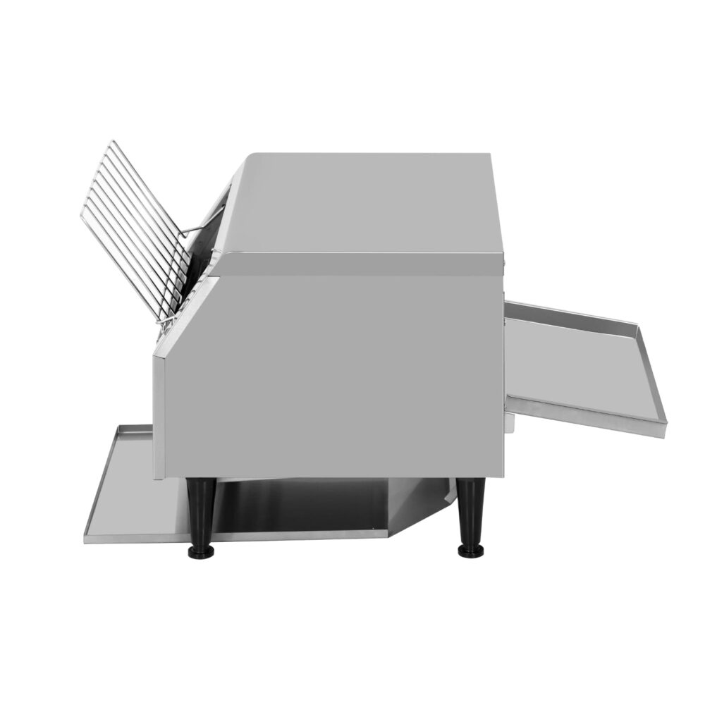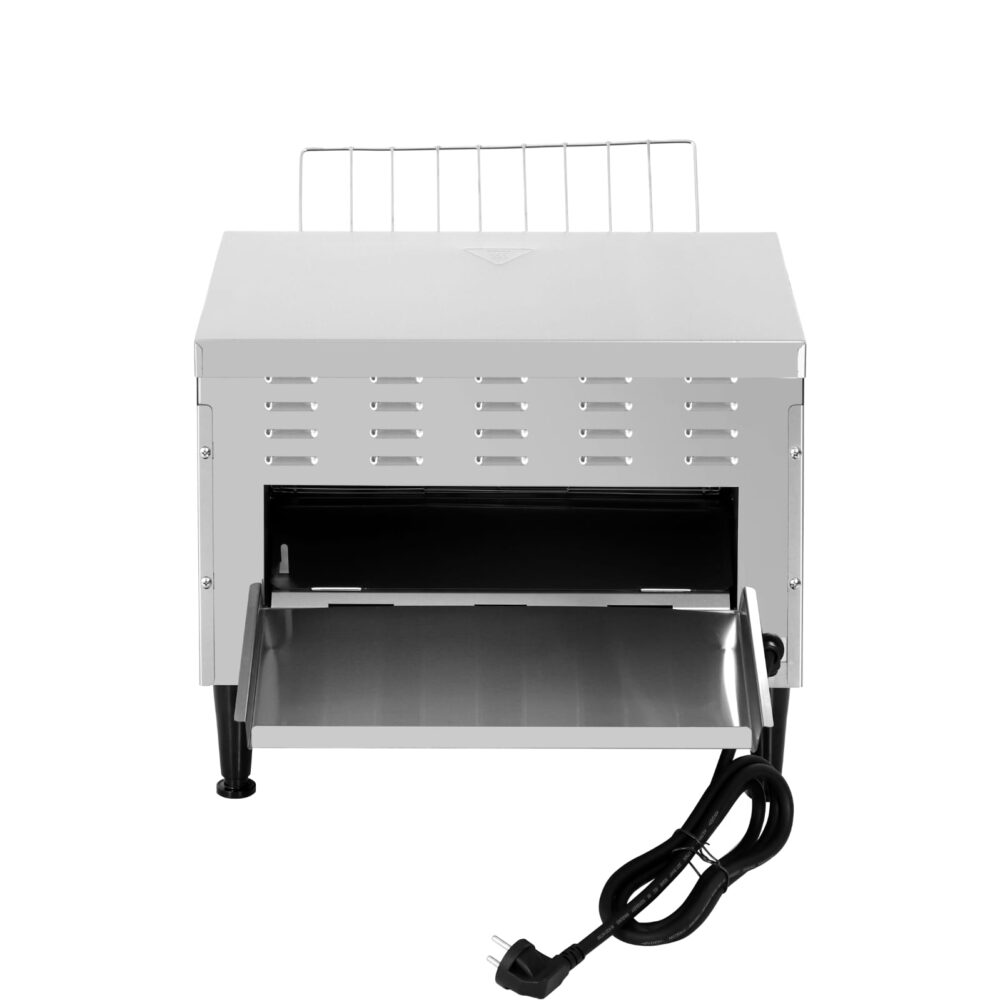 טוסטר מסוע מקצועי עשוי מנירוסטה איכותית, בעל שטח קליה גדול. לחימום וקליית צנימים מאפים לחמניות המבורגר וכו’.