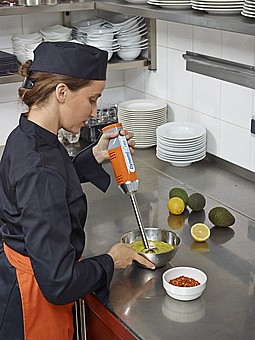 איתנות: צינור מיקסר ידני מנירוסטה ולהב מצופה טיטניום. עמיד במיוחד, מייעל את משך הזמן שלו בהקשר של שימוש אינטנסיבי.