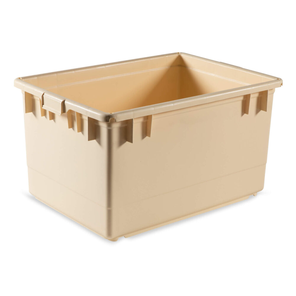 מיכל 130 ליטר מתאים לאחסון, שינוע, מתאים למשלוחים ולשימוש בתעשיות הטקסטיל, החקלאות, המזון והקייטרינג ועוד… מאושר מזון מידות: חיצוני: 420*550*770 מ”מ פנימי: 400*460*670 מ”מ נפח: