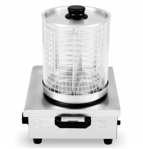 מכשיר מסתובב להכנת נקניקיות – 5 גלגלים מידות : ס"מ , הספק : 0.96KW , מכונת הנקניקיות שלנו שומרת על חום הנקניקיה ומפזרות את החום