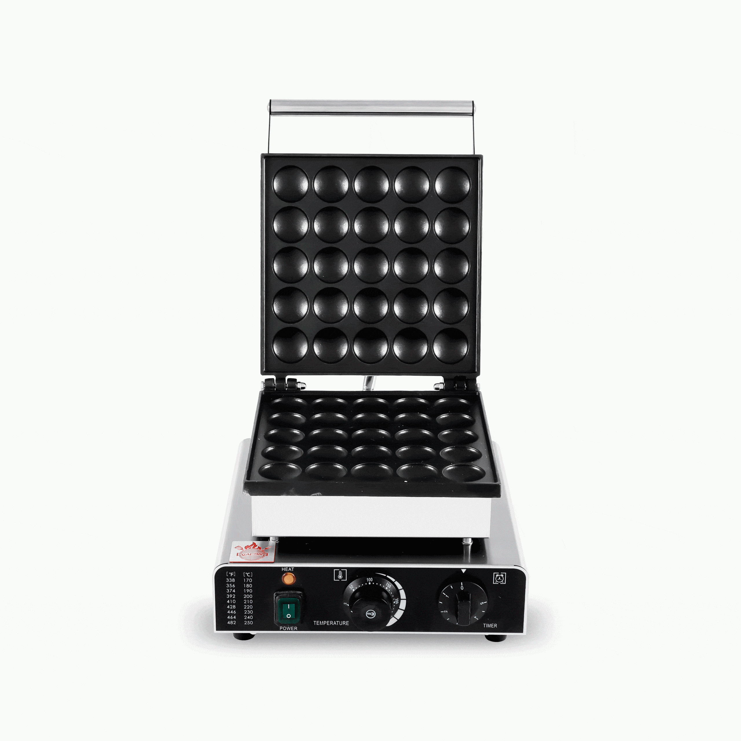 הכירו את מכשיר הפנקייק המקצועי להכנת כדורי פאשאפיש, המיועד לאפייה של 25 כדורים במקביל בצורה מהירה ויעילה. המכשיר מצויד בפלטות ברזל יצוקות המבטיחות פיזור חום אחיד