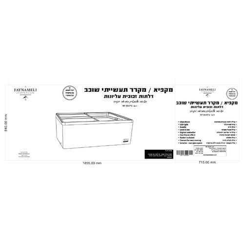 מקפיא/מקרר שוכב זכוכיות לתצוגה מלמעלה דגם RF-650PG מבית FAYNAMELI