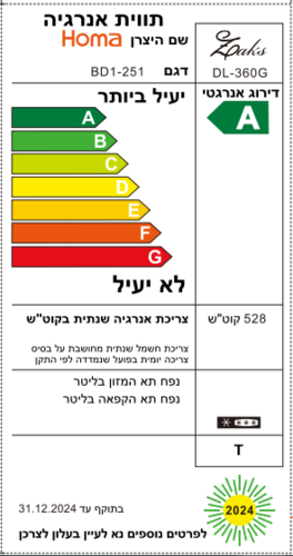 נפח (ברוטו / נטו) 572 ליטר / 561 ליטר דירוג אנרגטי A+ אפשרות הקפאה מהירה ניתן לבחור מצב מקרר או מקפיא לוח בקרה מכני תאורת LED פנימית