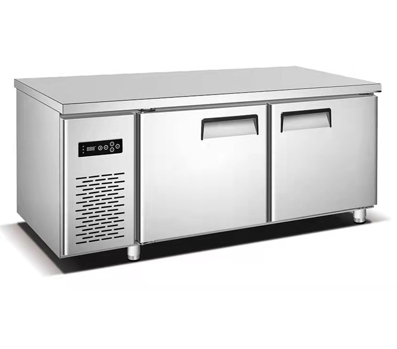 מקרר דלפק בעל 2 דלתות העשוי נירוסטה, בעל משטח עבודה. קיבולת: 300 ליטר, מידות: 1800X800X800 מ"מ, בעל קירור בטכנולוגיית R134a המתקדמת, הספק: 200W, משקל: 79 ק"ג, טמפ': 0-10 מעלות