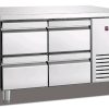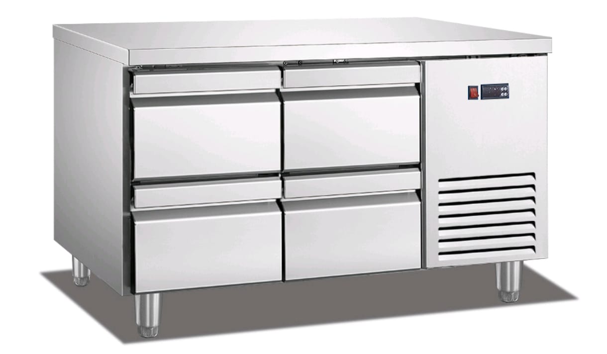 מקרר דלפק נירוסטה איכותי ואמין עם משטח עבודה עליון ומערכת קירור אוויר.