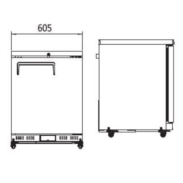 מקרר נירוסטה תעשייתי דלפקי דלת אחת ברוחב 60 ס"מ 145 ליטר