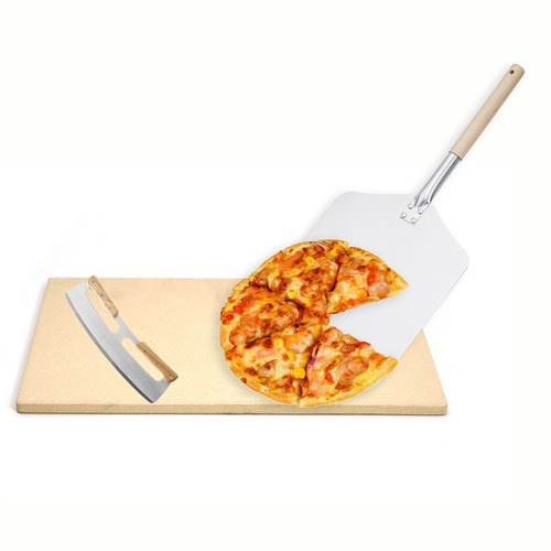 ערכת פיצה הכוללת: : אבן שמוט 30/38 ס"מ, סכין פיצה 35 ס"מ 2 ידיות, כף פיצה אלומיניום יד’ עץ 305X335X840 מ"מ