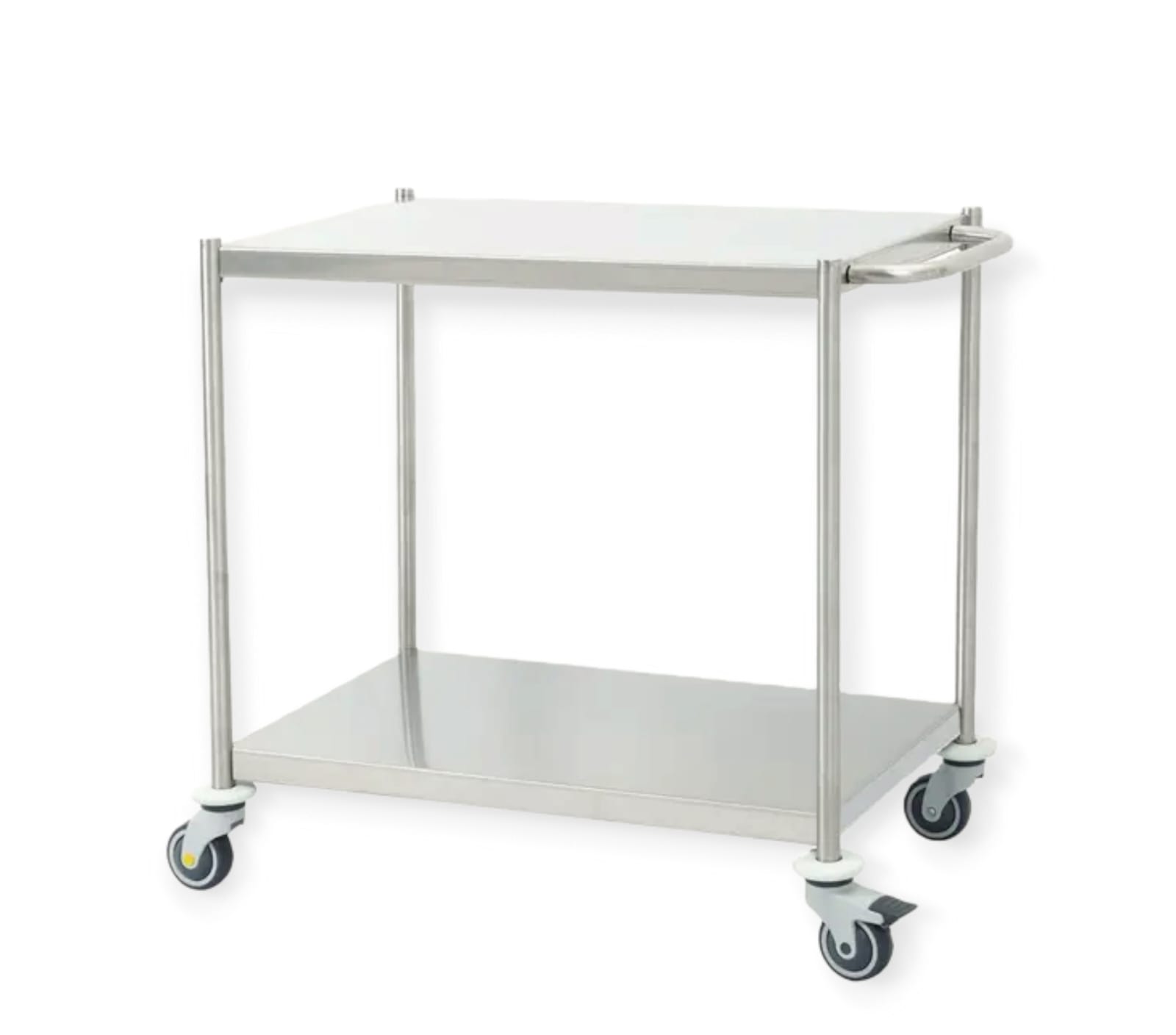 עגלת נירוסטה במידות 120/60 ס"מ גובה 90 ס"מ בעלת ידית דחיפה ומדף תחתון