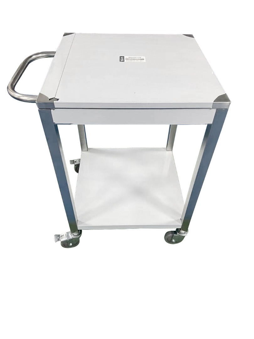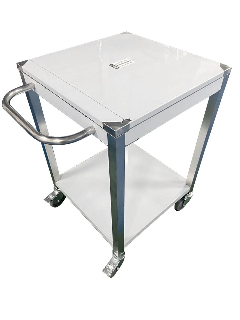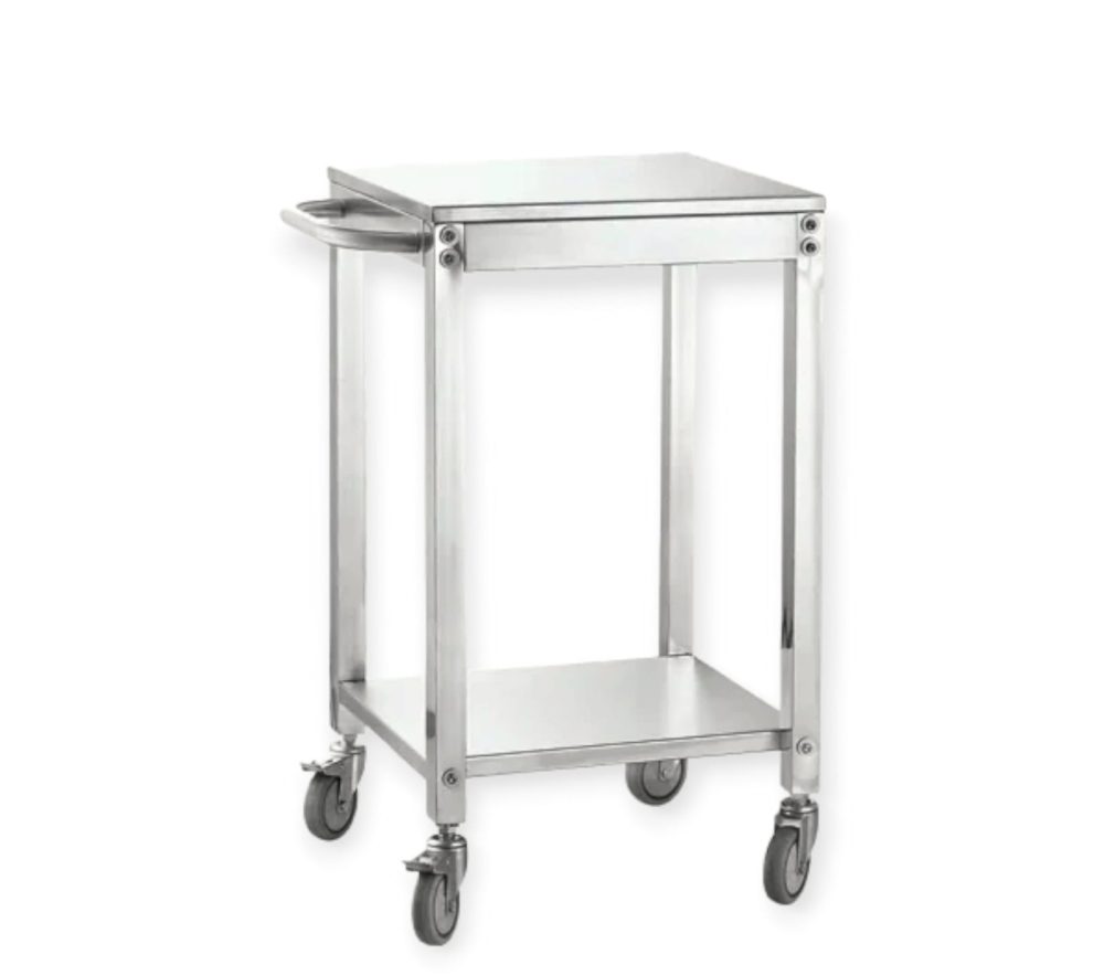 עגלת נירוסטה במידות 60/60 ס"מ גובה 90 ס"מ בעל ידית דחיפה ומדף תחתון