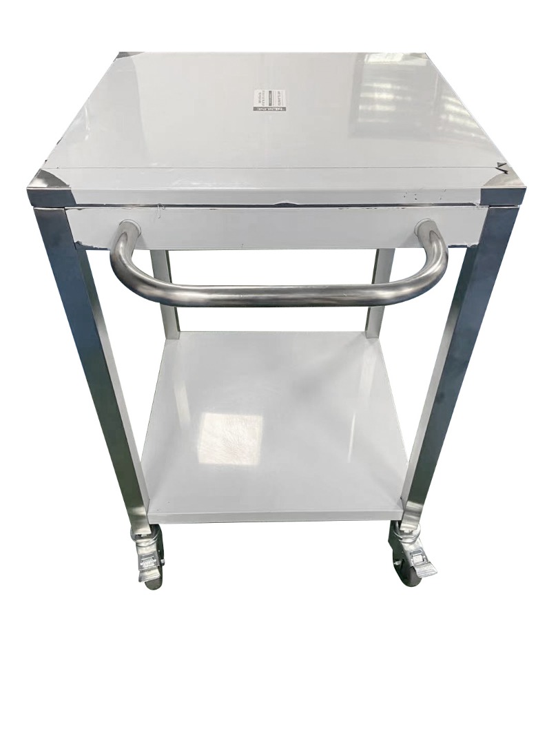 עגלת נירוסטה במידות 80/60 ס"מ גובה 90 ס"מ בעל ידית דחיפה ומדף תחתון