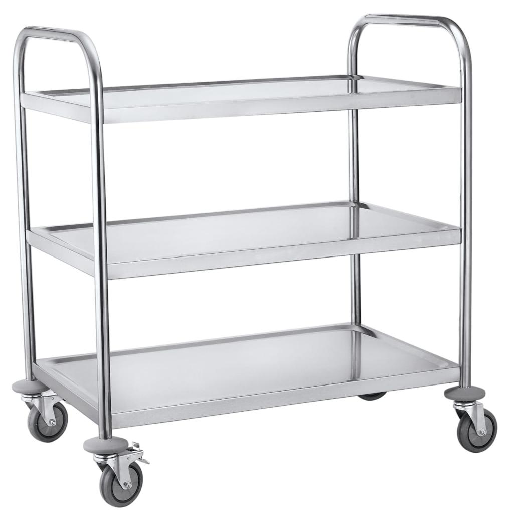 עגלת שרות עשויה נירוסטה בעלת 3 מדפים, מידות: 84.5/52.5/94 ס"מ