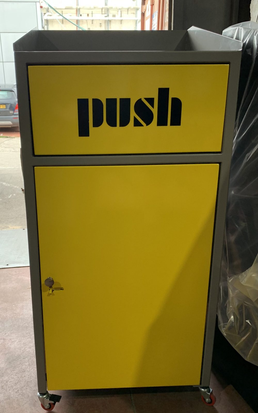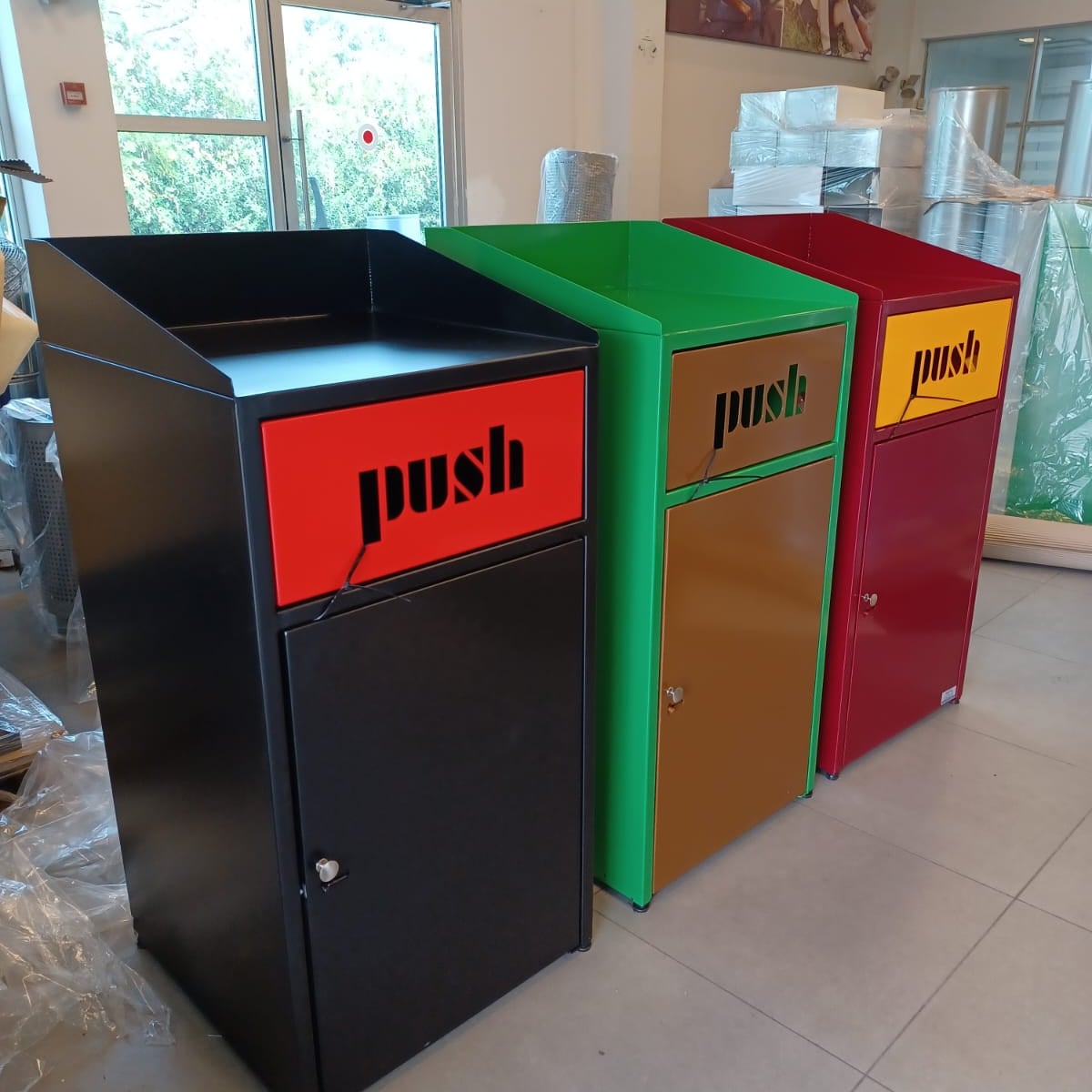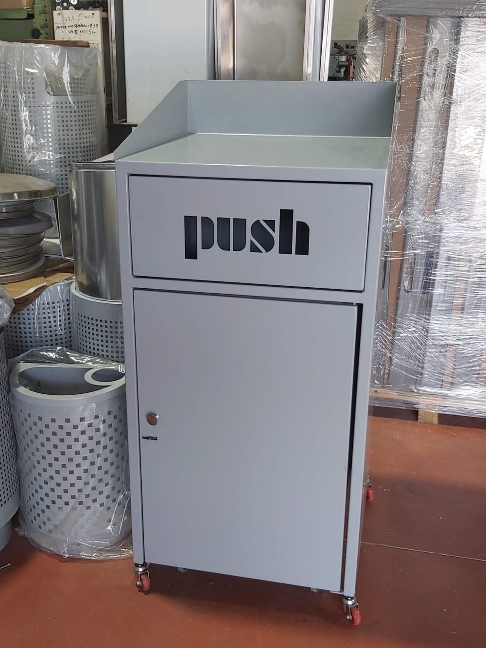 פח פינוי מגשים עשוי מתכת מגולוונת צבוע בתנור פח מגשיות עשוי מתכת מגולוונת צבע בתנור לבחירה , ניתן לשלב ב 2 צבעים גובה 125 סמ