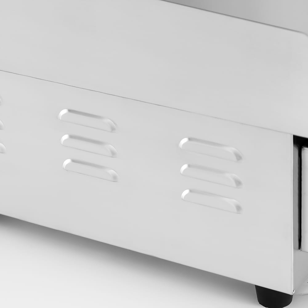 חימום מהיר ואחיד. בית נירוסטה אמיד, משטח ברזל! יכולת עבודה רציפה לאורך זמן. מגש נוזלים נשלף. לצלייה של בשרים, דגים, ירקות ועוד.