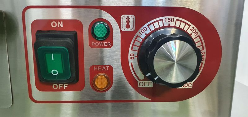✅ טרמוסטט מכני עד 300°C – שליטה מדויקת בטמפרטורת הצלייה.