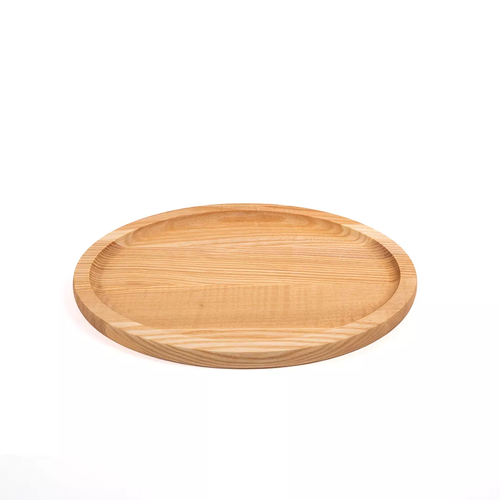 צלחת פיצה מעץ מלא, אשא, קוטר 30 ס"מ, גובה 2 ס"מ. בעיצוב עגול עם תעלת ניקוז נוזלים.