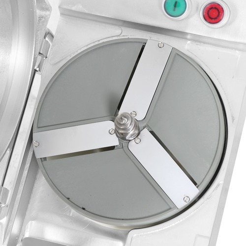 קוצץ ירקות תעשייתי בעל מפתח רחב במיוחד, מידות: 655/325/535 מ"מ, הספק: 750W חד פאזי מסופק עם 5 סכינים: פומפיה 3 מ"מ, פומפיה 4.5 מ"מ, פומפיה 7 מ"מ, פורסת 2 מ"מ, פורסת 4 מ"מ, ניתן לרכוש מגוון של סכינים נוספים