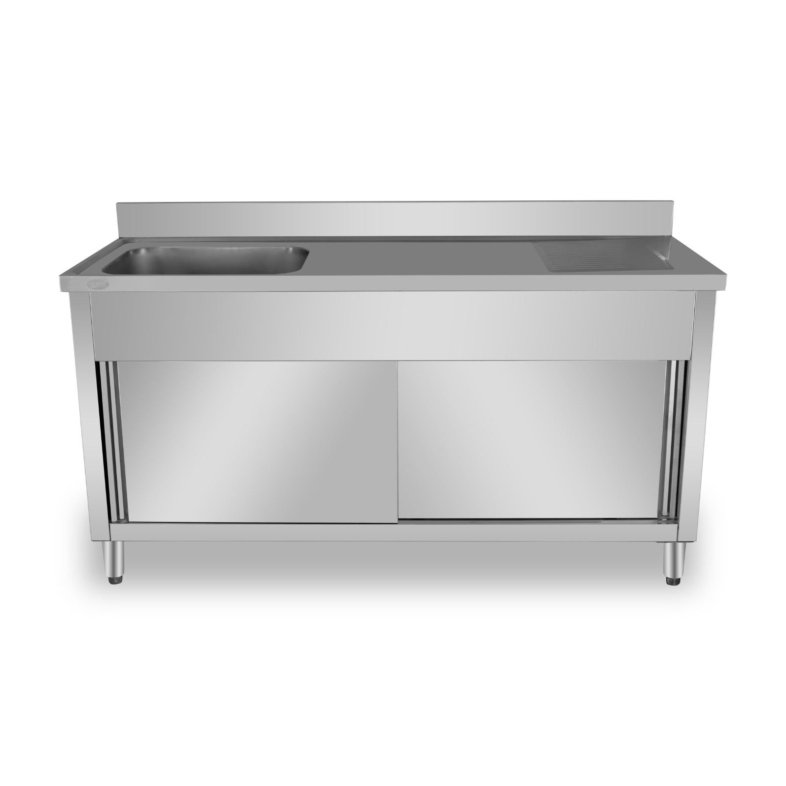 ארונית נירוסטה עם דלתות הזזה + משטח עבודה וכיור במידות: 1200/700/850 מ"מ