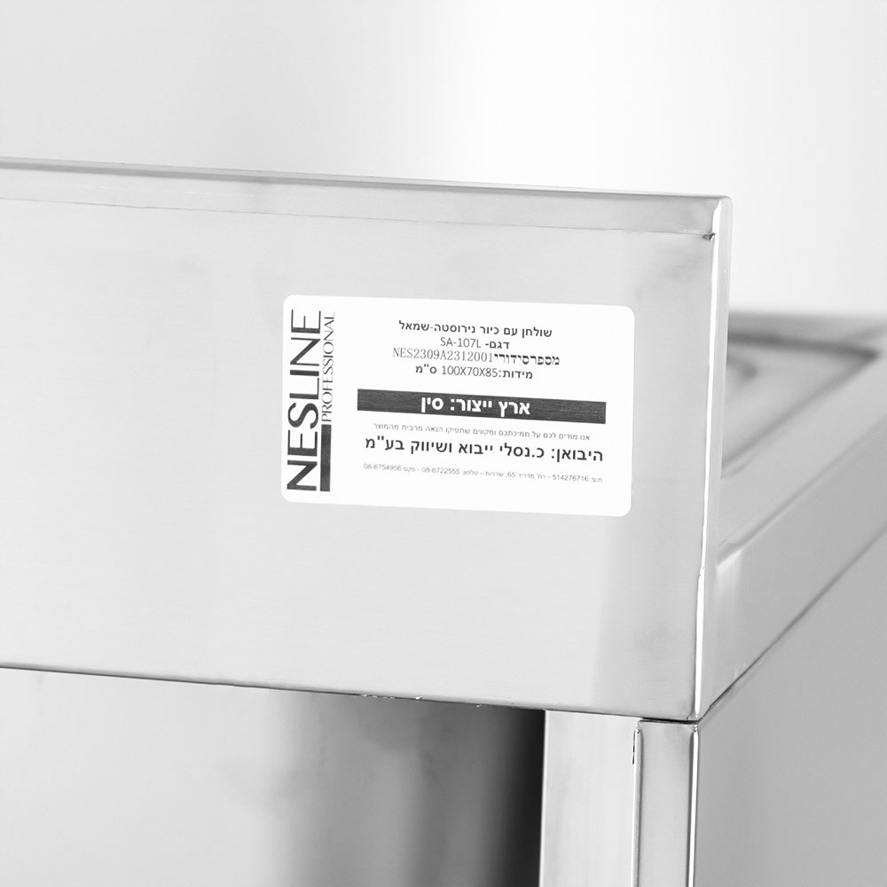 שולחן עבודה נירוסטה 1000/700/850 מ”מ עם כיור שמאל במידות: 400/500/250 מ”מ נסליין